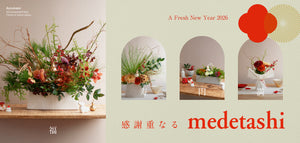 一年を振り返り、「めでたし」と笑顔で締めくくれるように──。&YOUKAENの迎春ギフト「medetashi」は、感謝が重なり福を呼び込む、新しい年のための特別な花飾りです。華やかさだけでなく、心を整え、日々を彩るための“年の始まりのしるし”としてお届けします。