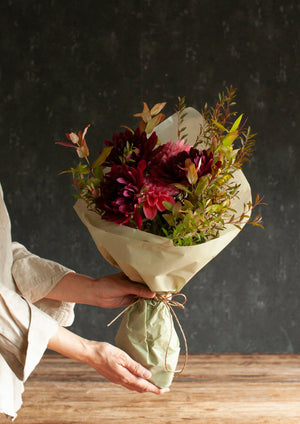ユーカリはシルバーがかった色合いが魅力。旬のお花と合わせて花束に仕上げると、全体が落ち着いた雰囲気になります。