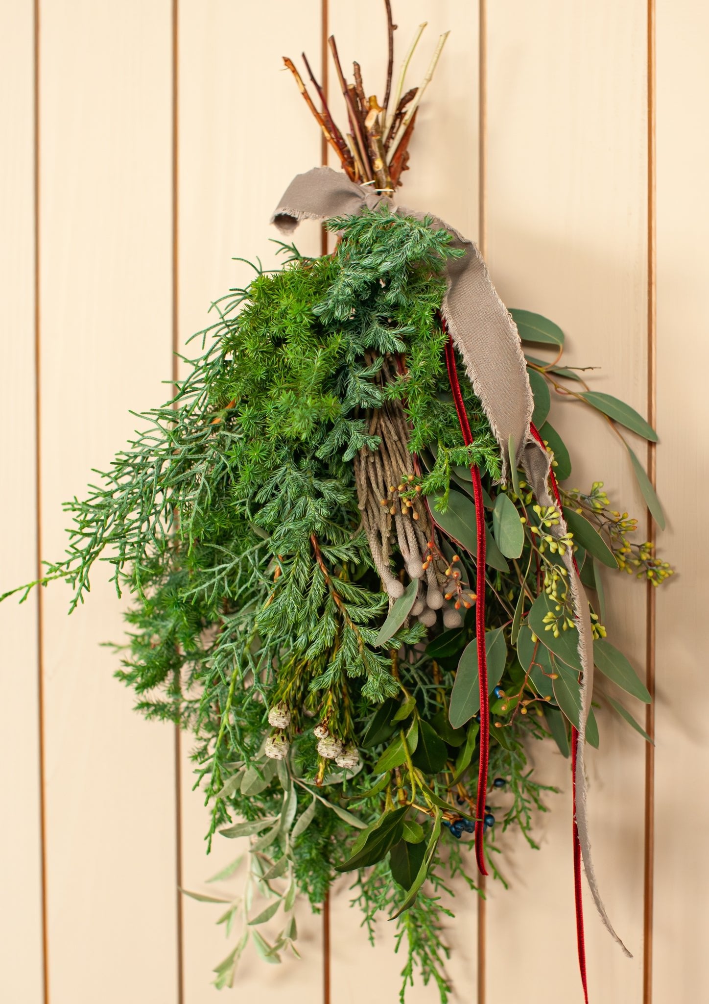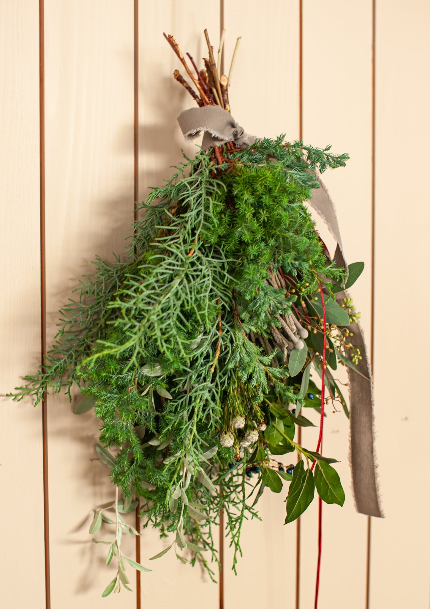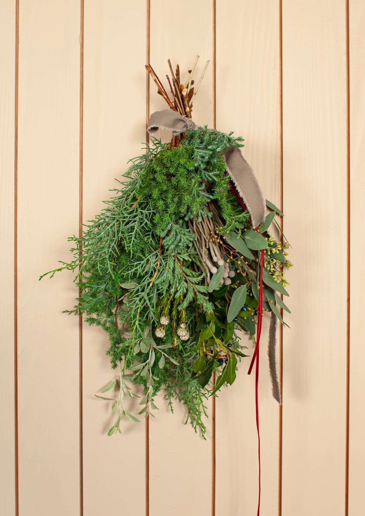 森の空気をそのまま束ねたような、北欧風スワッグ
