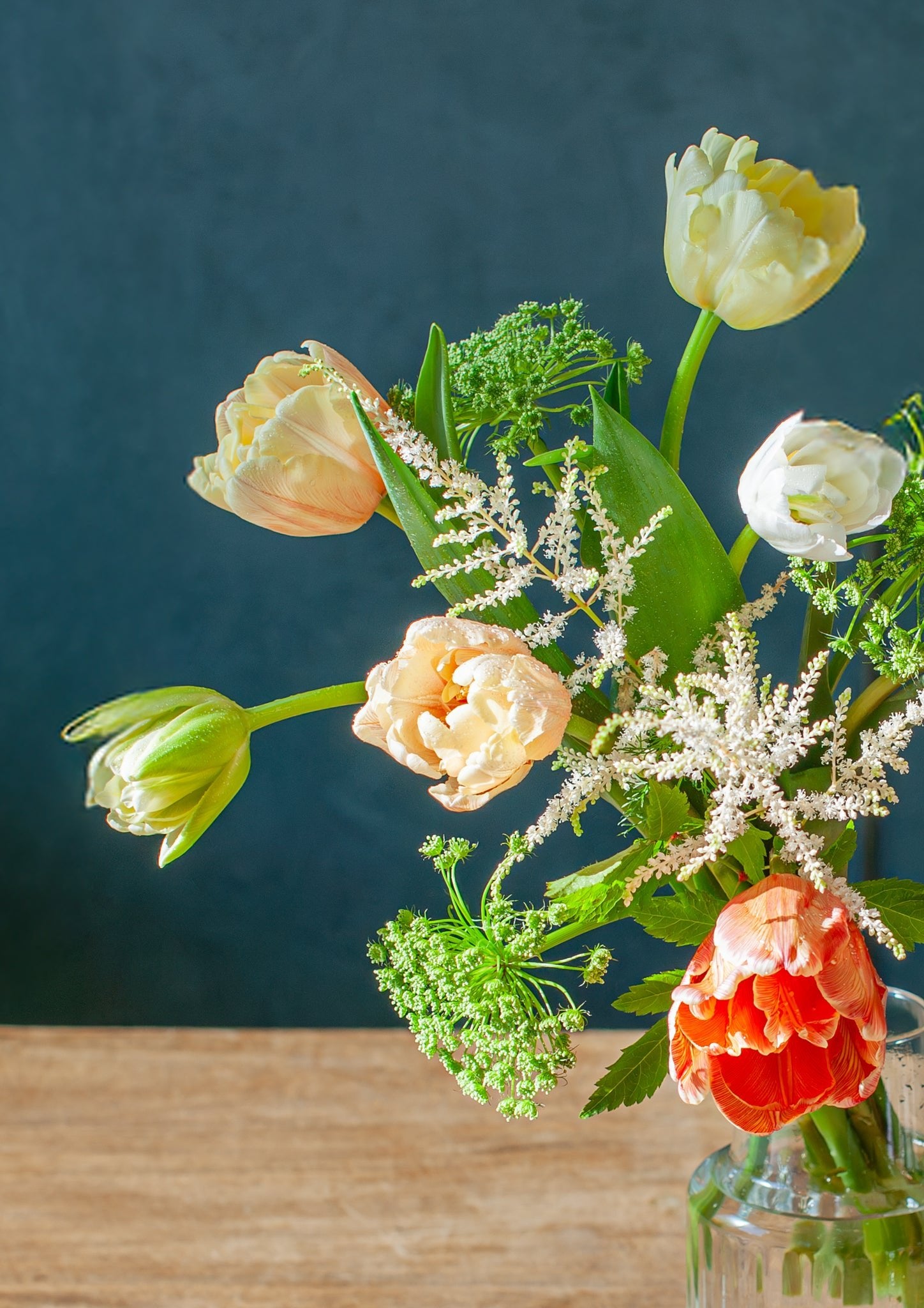 蕾から、満開、そしてドライになるまで。力強さと繊細さをあわせ持つチューリップの表情を、どうぞごゆっくりお楽しみください。