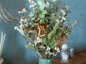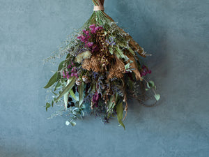 フローリストがドライフラワーをセレクトし、1点1点お作りするスワッグになります。お贈りする方、ご購入される方がイメージがしやすいように、ナチュラルで可愛らしい、ホワイトの入ったもの、色味の入ったもの、大きく大胆な物など、それぞれのデザインを分かりやすくしました。