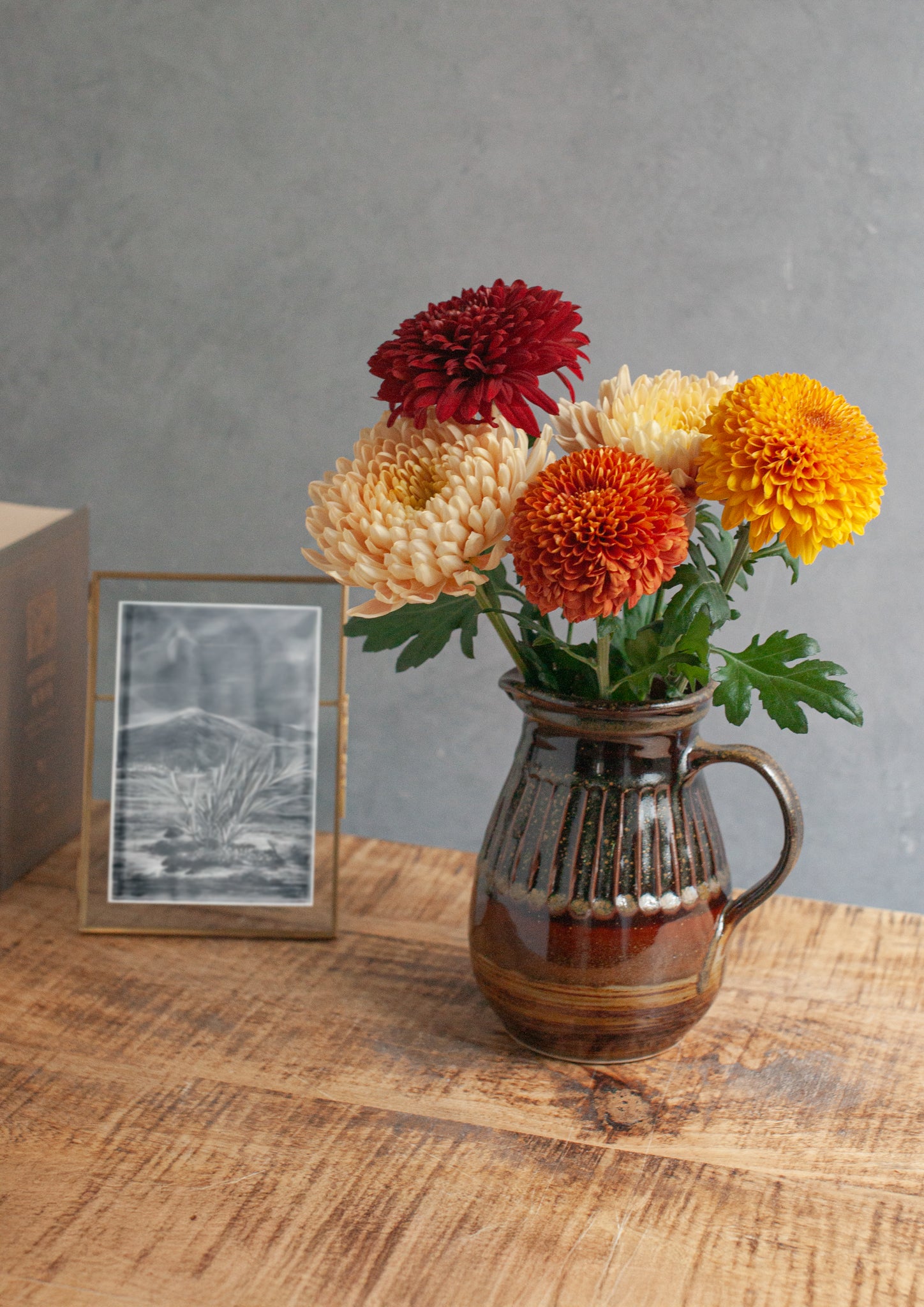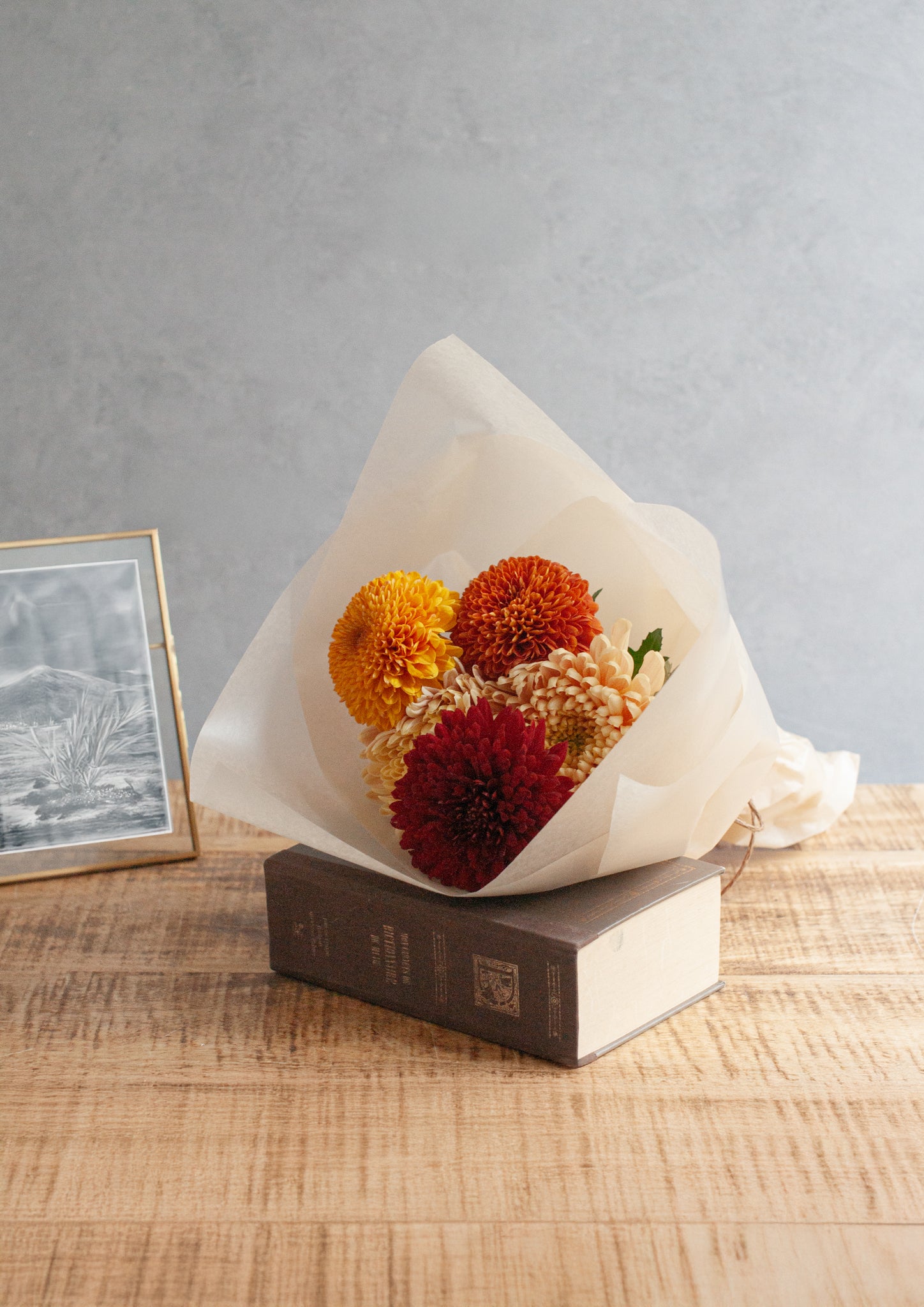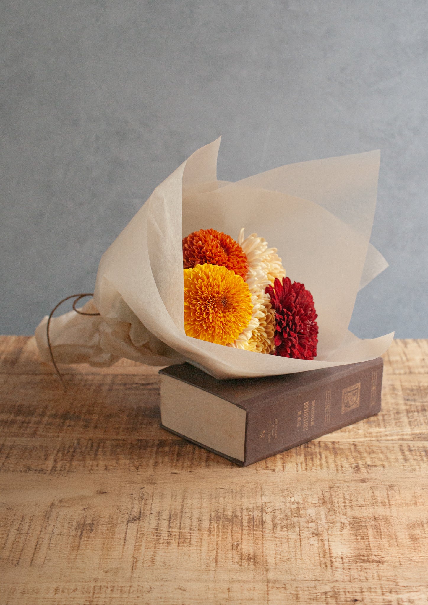 季節のお花、おしゃれなニュアンスカラーのマムをお届けします。